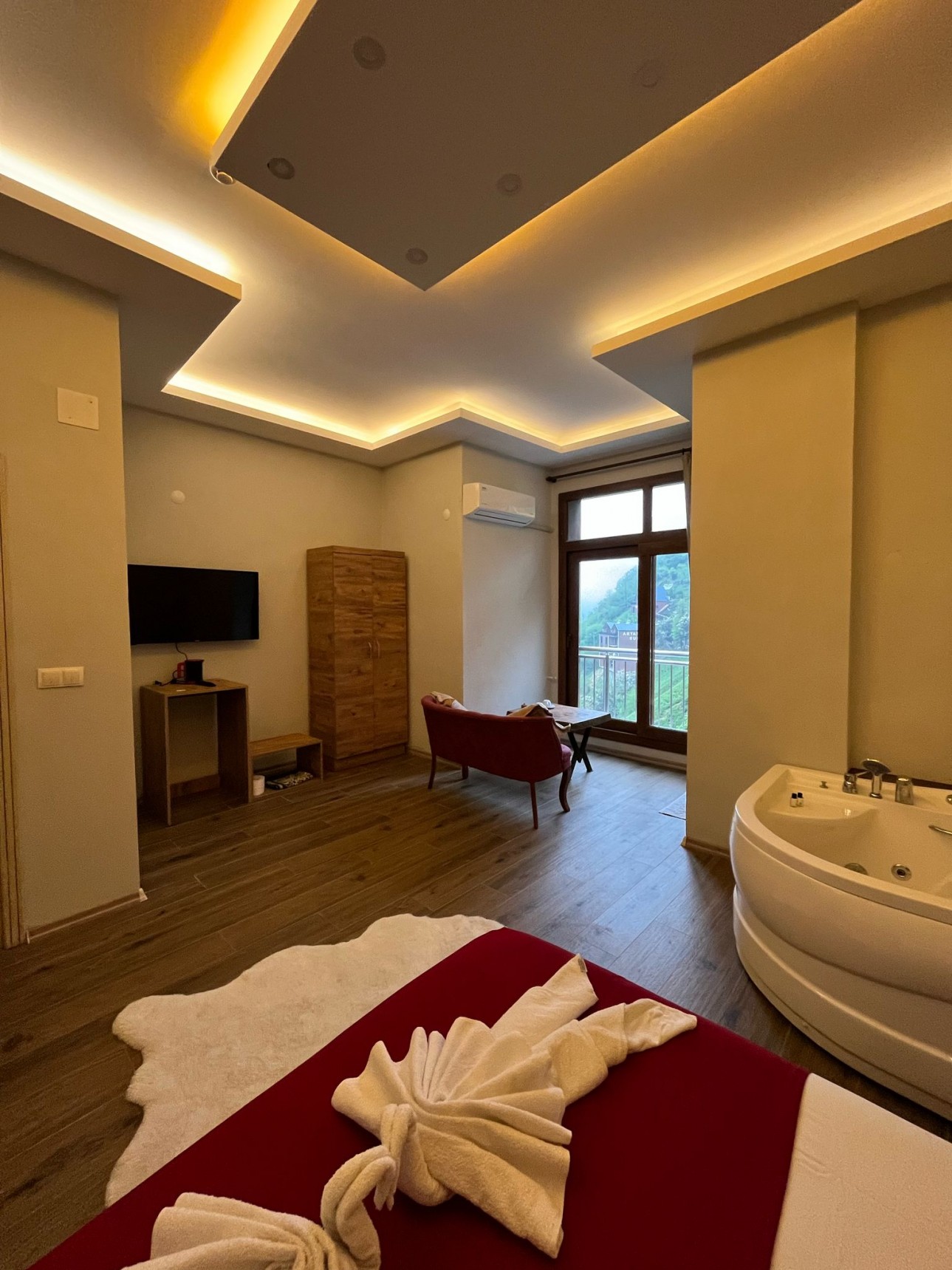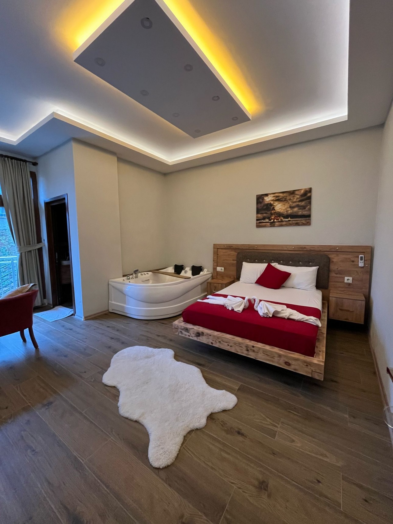 Jakuzili Romantik Oda, hem çiftler hem de aileler için ideal bir konaklama seçeneği sunmaktadır. Şıklığı ve konforu bir araya getiren bu oda, tatilinizi daha özel kılmak için tasarlanmıştır.